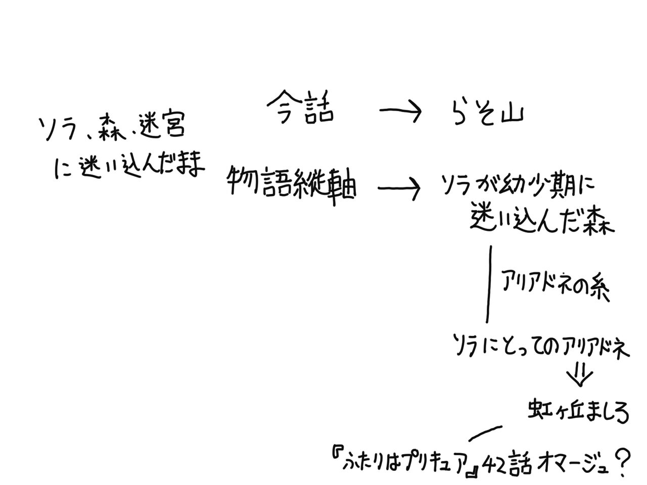 その「迷宮」からソラさんが(ギリシャ神話でいう)「アリアドネの糸」をたどって「外」に出てくるまでが『ひろがるスカイ!プリキュア』という物語の主軸なのだ、というのが現時点での僕の解釈です。