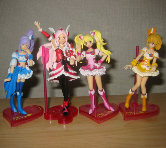 <レビュー記事としては紛らわしくてすいません。写真のうち、パッションだけが上段のプリキュアート4種の中のもので、他のピーチ、ベリー、パインはだいぶ前に発売された下段の「ドール」3種のものです>
